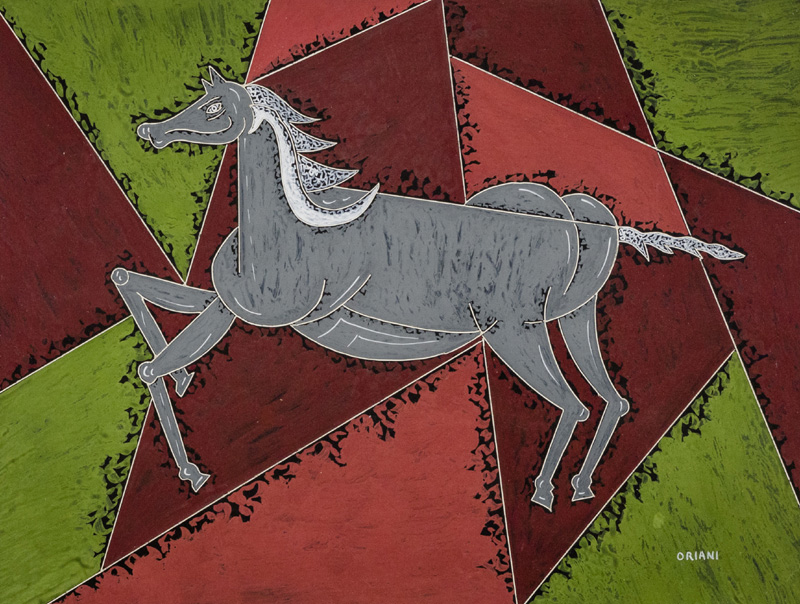 Pippo Oriani (Torino 1909 Torino 1972) Cavallo Tecnica mista su cartone, cm. 32x43. Firmato in basso a destra. Sul verso: timbro di autenticità con firma.