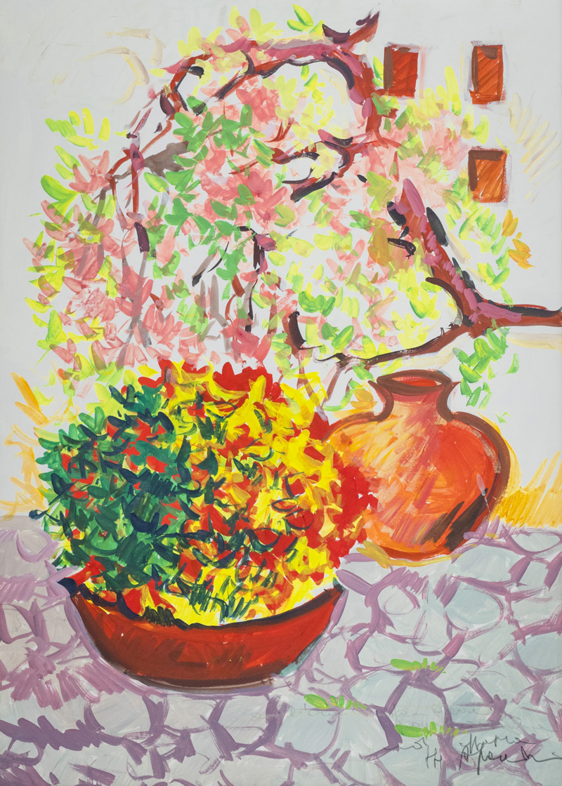 Athos Faccincani (Peschiera del Garda (Vr) 1951) Scorcio di giardino Acquerello su carta, cm. 70x50. Firma e dedica a persona in basso a destra.