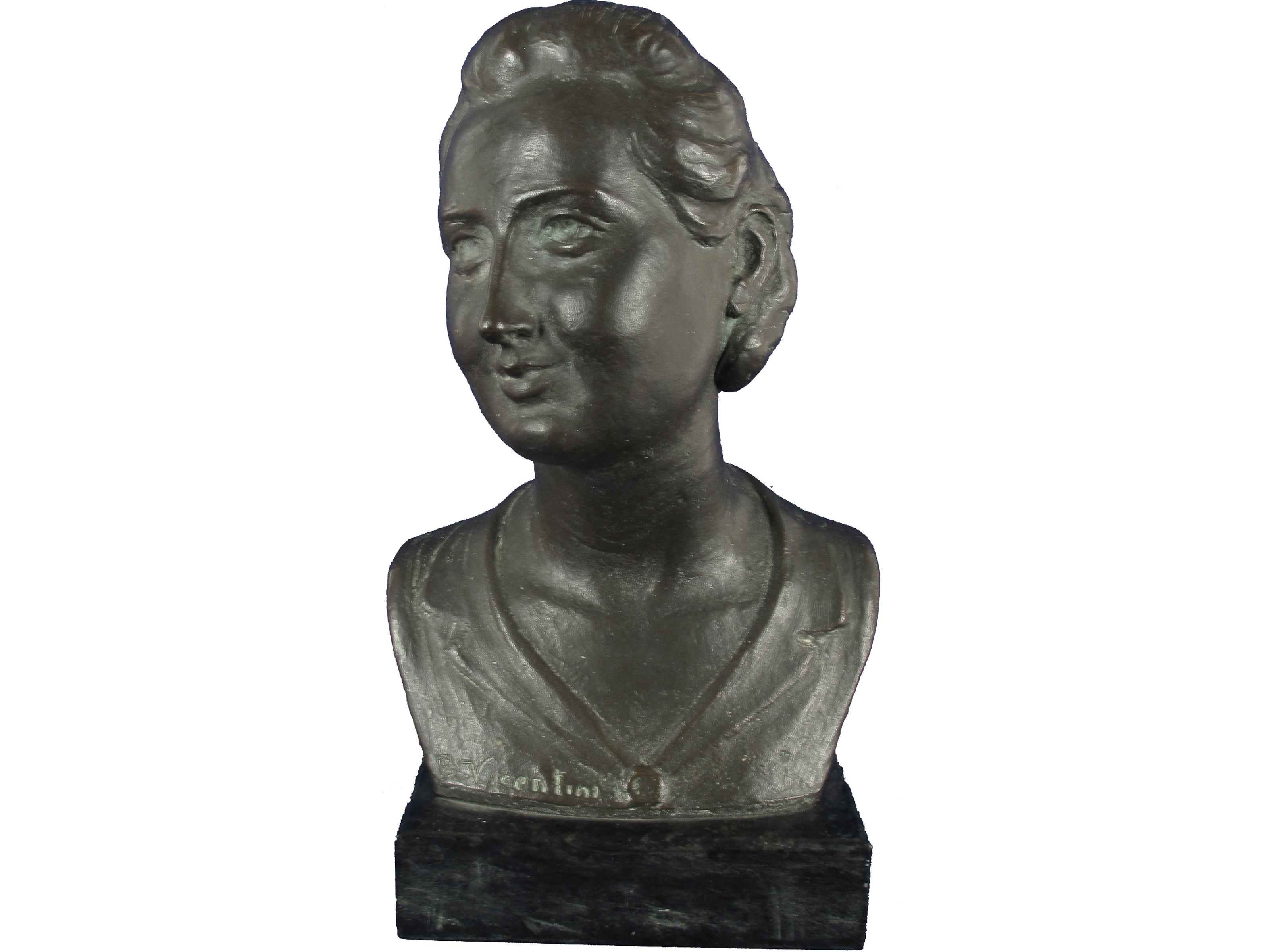 Ritratto di giovane donna in bronzo firmata B. Vicentini. Epoca: inizio XX secolo Altezza 20.5 cm, con base in legno