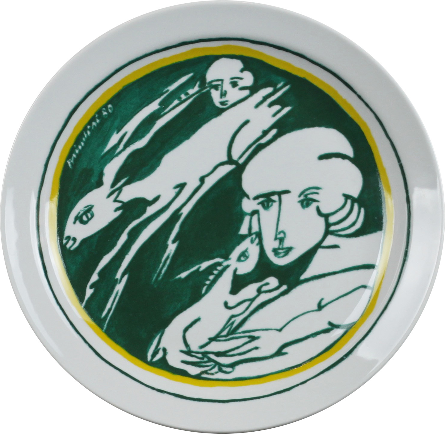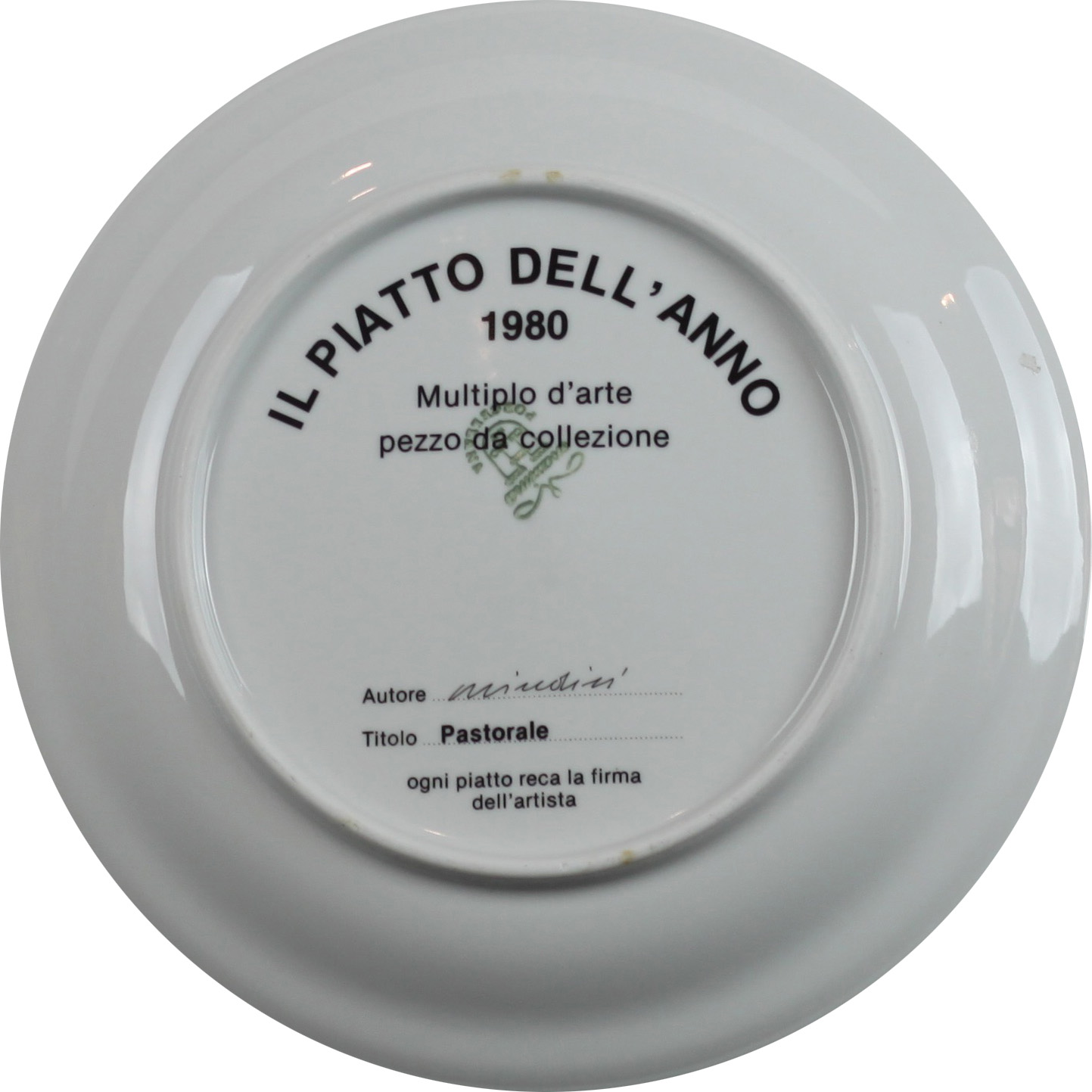 Remo Brindisi ( Roma 1918 - Lido di Spina 1996) Pastorale 1980 Diam. 23,5 Ceramica smaltata Multiplo d'arte Pezzo da collezione Firmato in alto a sx