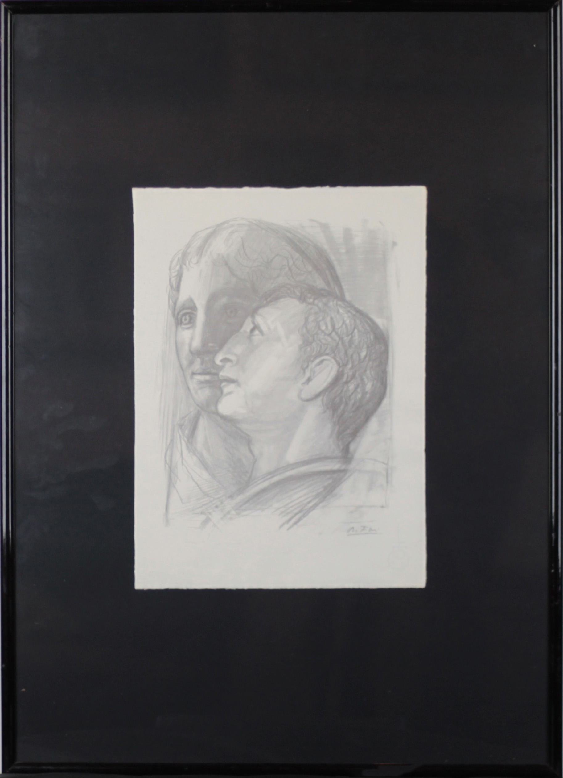 Achille Funi ( Ferrara 1890 - Appiano Gentile 1972) Senza titolo Lotto composto da n.02 opere grafiche di dim.37x27 cad. appartenenti e accompagnate dal Libro dei Sepolcri Foscolo & Funi. All'interno del libro dedica e firma autografa Achille Funi.