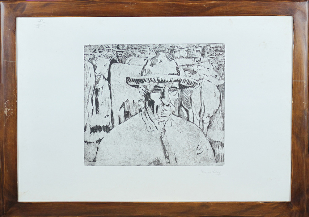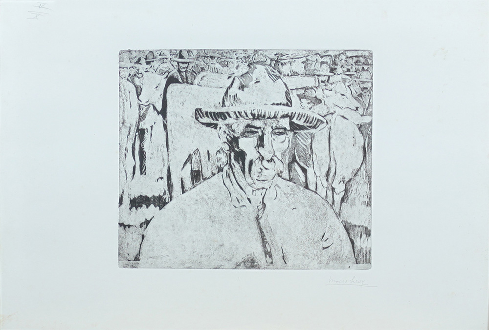 Moses Levy ( Tunisi 1885 - Viareggio 1968) Ritratto di contadino alla fiera dei bovini Dim.43x63 Incisione Esemplare V/X Tiratura in alto a sx Firmato a matita in basso a dx