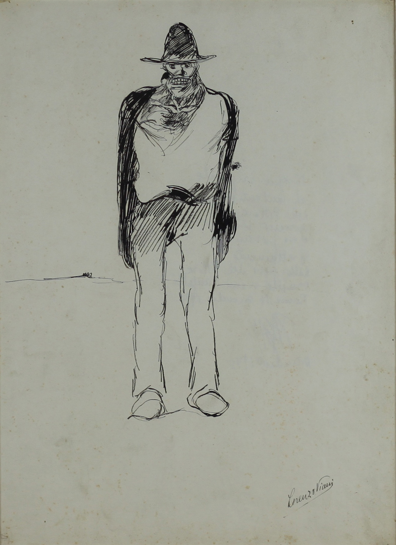Lorenzo Viani ( Viareggio 1882 - Lido di Ostia 1936) Operaio Dim.48x35 China...