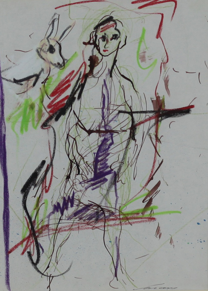 Ernesto Treccani ( Milano 1920 - Milano 2009) Senza titolo Anni 70 Dim.30x20 Tecnica mista su carta Firmato in basso a dx