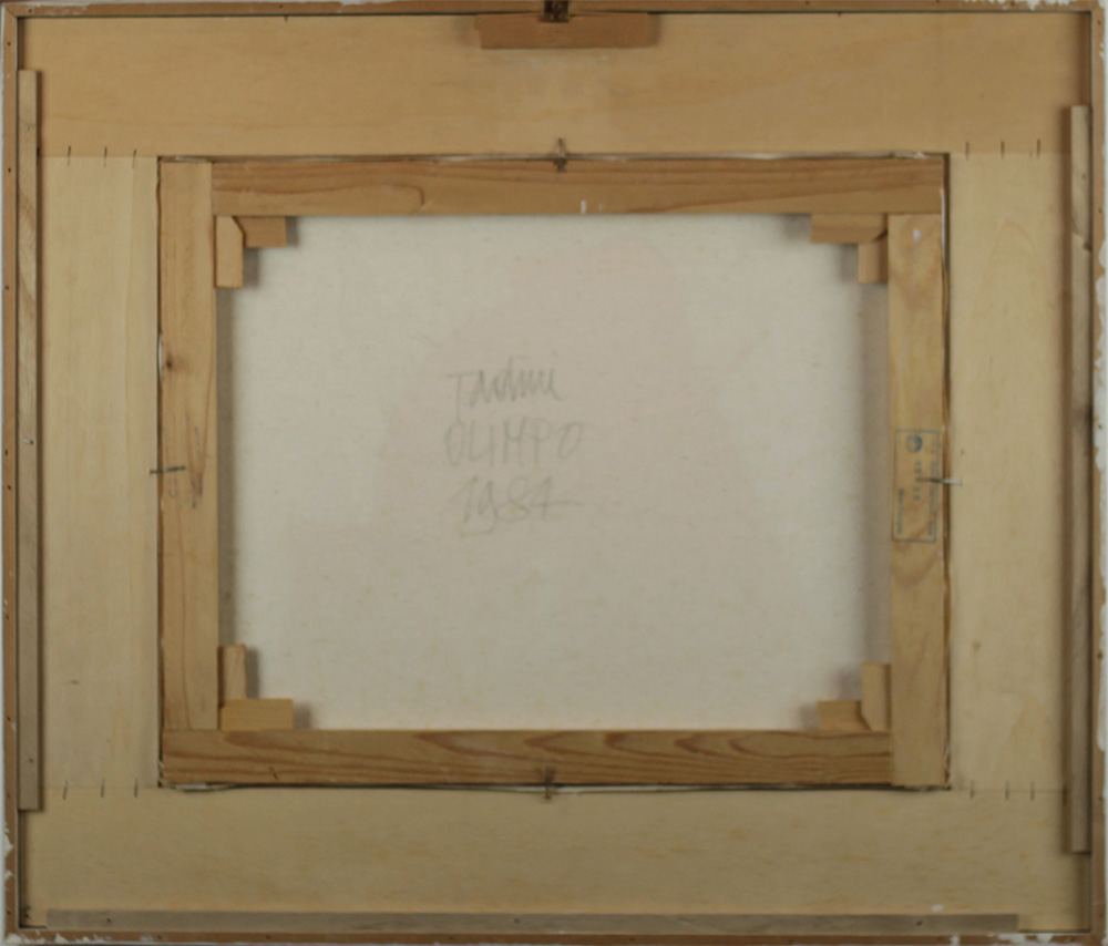 Emilio Tadini ( Milano 1927 – Milano 2002) Olimpo 1984 Dim.40x50 Olio su tela Autentica su foto dell'artista in data 29/05/1988 Al verso firma, titolo e data