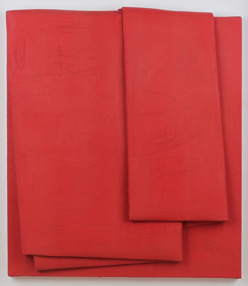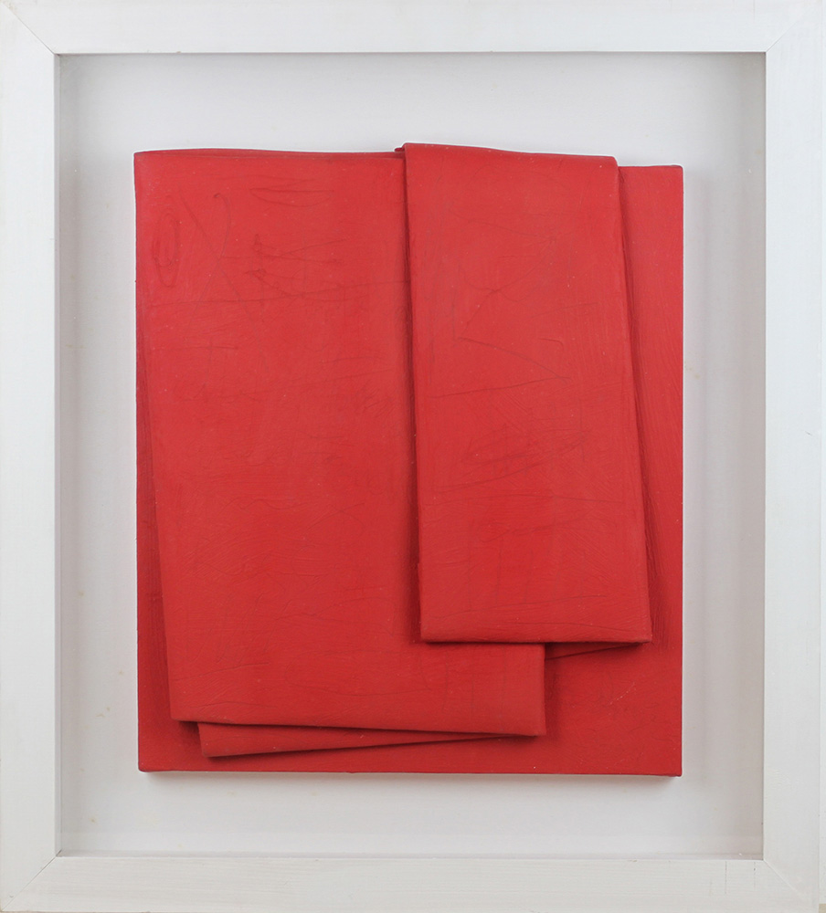 Cesare Berlingeri ( Cittanova 1948 ) Sul rosso piegato 2009 Dim.45x40 Olio e grafiti su tela piegata Al verso firma, data e titolo