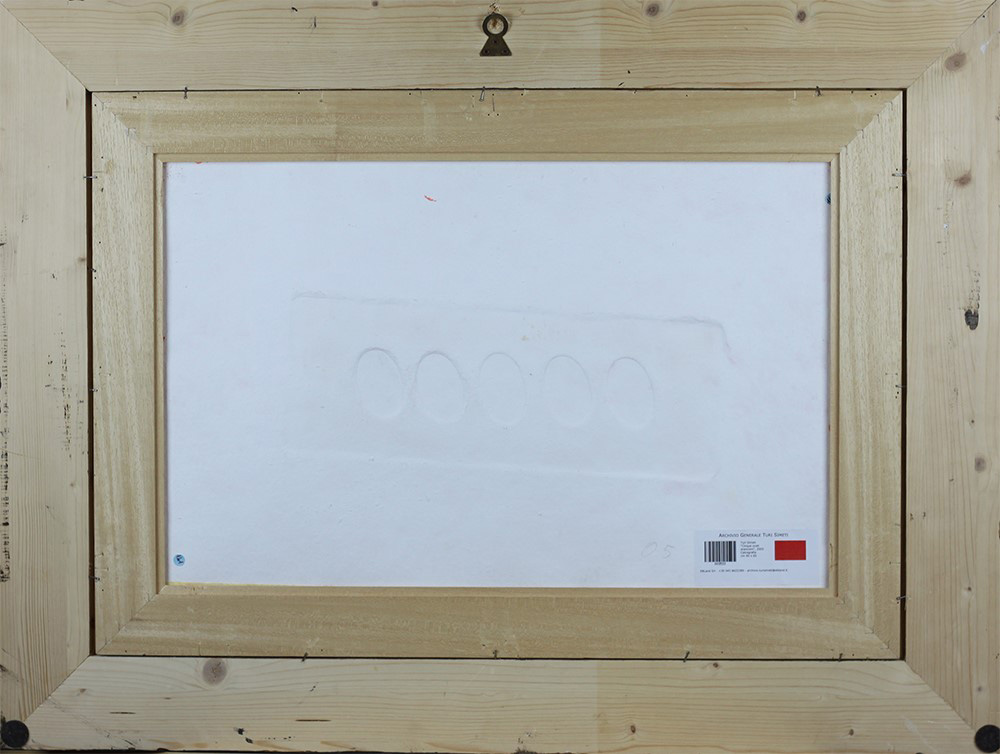 Turi Simeti ( Alcamo 1929) Cinque ovali 2005 Dim.40x60 Tempera ed estroflessione su cartone (calcografia) Opera pubblicata sul catalogo Turi Simeti Al verso etichetta dell'Archivio Generale Turi Simeti Firmato in basso a dx