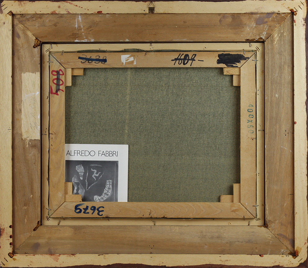 Alfredo Fabbri ( Grosseto 1926 – Grosseto 2010) Frammenti etruschi Dim.40x50 Olio su tela Autentica su foto dell'artista Opera pubblicata su brochure di Alfredo Fabbri Firmato in basso a dx