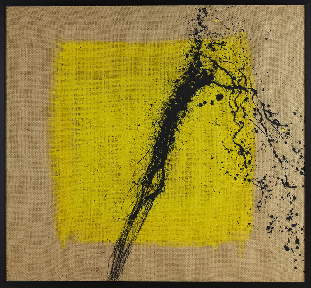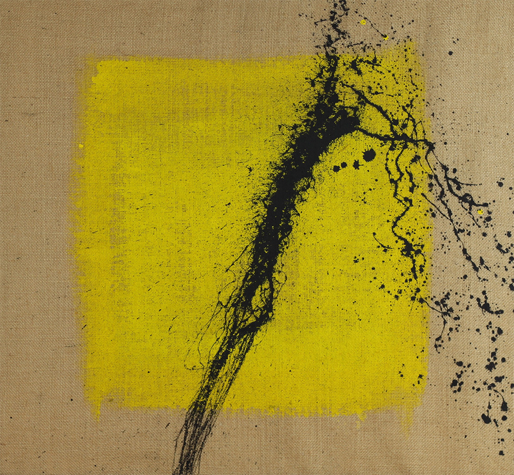 Tun Chandà ( Novara 1980) Yellow and black 2011 Dim.60x65 Smalto acrilico su tela di juta Opera pubblicata su brochure della Mostra presso 809 Art Gallery, Milano Certificato di Arteelite Savona Al verso certificato di Artelite, titolo, data, firma ed etichetta che attesta la registrazione dell'opera presso l'Archivio Generale delle opere di Tun Chandà a cura dell'Associazione Culturale san Marco