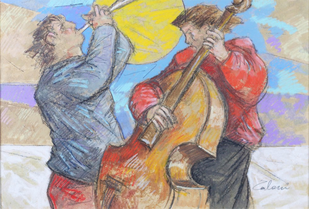 Giampaolo Talani ( San Vincenzo 1955 – Pisa 2018) Suonatori jazz 2013 Dim.40x50 Tecnica mista su cartone Autentica su foto dell'artista Al verso firma, titolo, data e tecnica Firmato in basso a dx