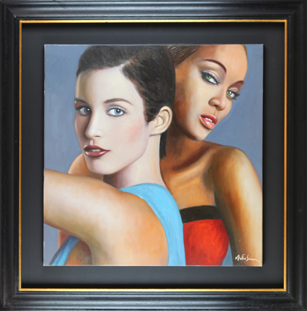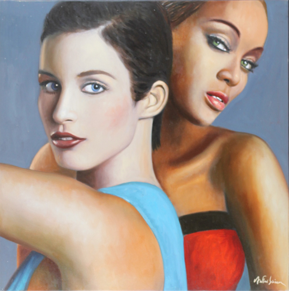 Antonio Sciacca ( Catania 1957) Le amiche Dim.74x74 Olio su tela Autentica su foto dell'artista Firmato in basso a dx