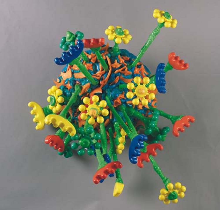 ALEX ANGI Cannes (Francia) 25/11/1965 Plastic land, 2006 plastiche colorate e assemblate cm. 120x120, opera non firmata, dichiarazione d'autenticità dell'artista su foto, pubblicato sul catalogo "Cracking Art Revolution" a cura di Piero Adorno, Claude Lorent e Francesco Santaniello, Edizioni Skira (MI), pagina 224.