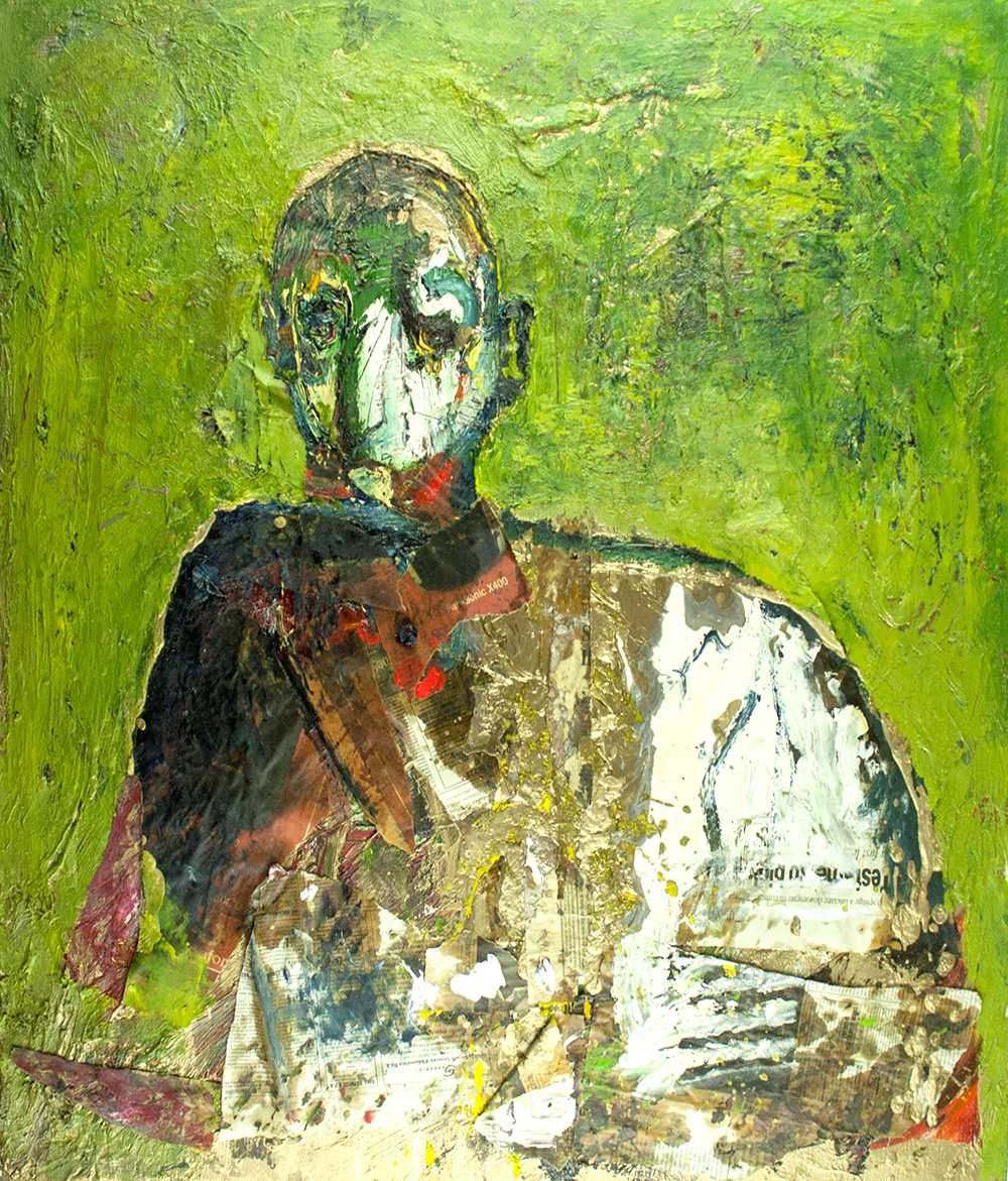 DARIO ROSSI " Autoritratto " olio e collage su tela cm 80x70 firmato e titolato "Autoritratto " al retro