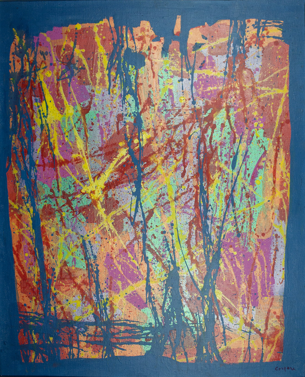 ANTONIO CORPORA Tunisi 1909 - Roma 2004 " Gli stendardi di Saladino " anno 1978 murale su tela cm 81x64 firmato in basso a dx firmato, datato e titolato al retro Autentica dell' Autore su fotografia con timbro Galleria Marconi - Forte dei Marmi