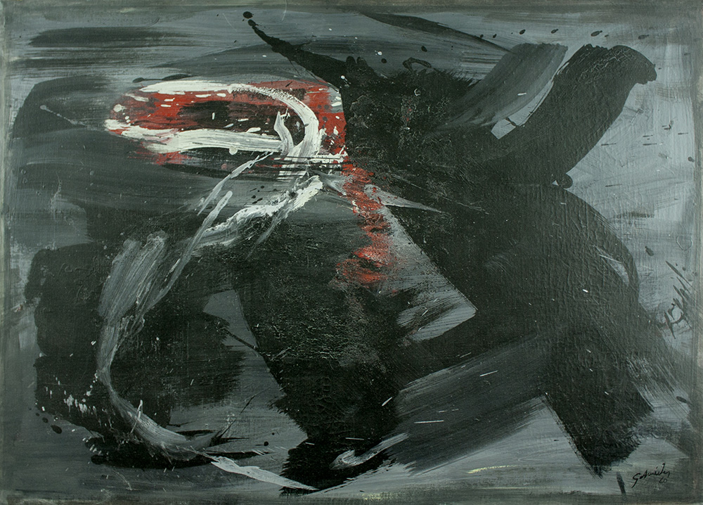 GÈRARD SCHNEIDER Sainte-Croix 1896 - Parigi 1986 tecnica mista su tela anno 1960 cm 59X83 firmato e datato in basso a dx Autentica su fotografia Lorenzelli Arte - Milano