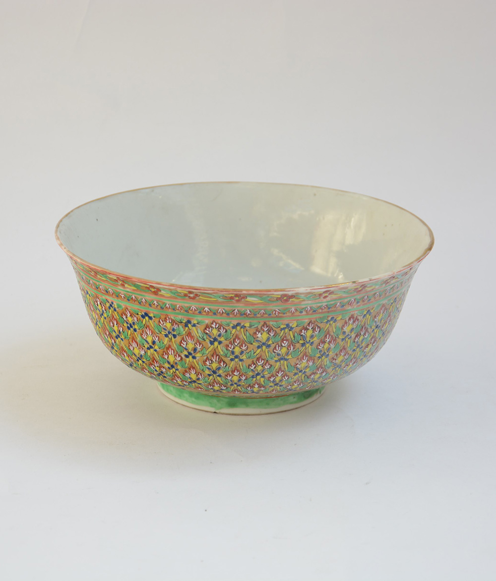 Ciotola in porcellana a smalti policromi in rilievo (lievi difetti)
