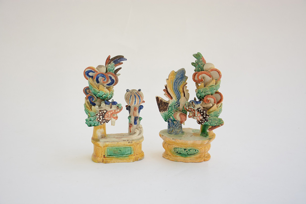 Gruppo di figure in grès smaltate raffiguranti dragoni (mancanze e restauri)