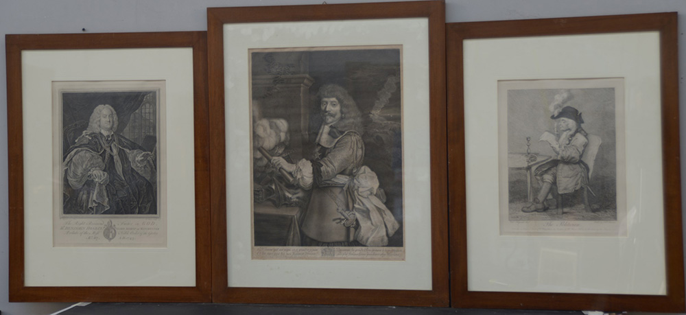 Lotto di tre incisioni raffiguranti personaggi, autori e misure diverse, in...