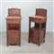 Coppia di comodini liberty in legno con intagli a foglie e fiori stilizzati,...