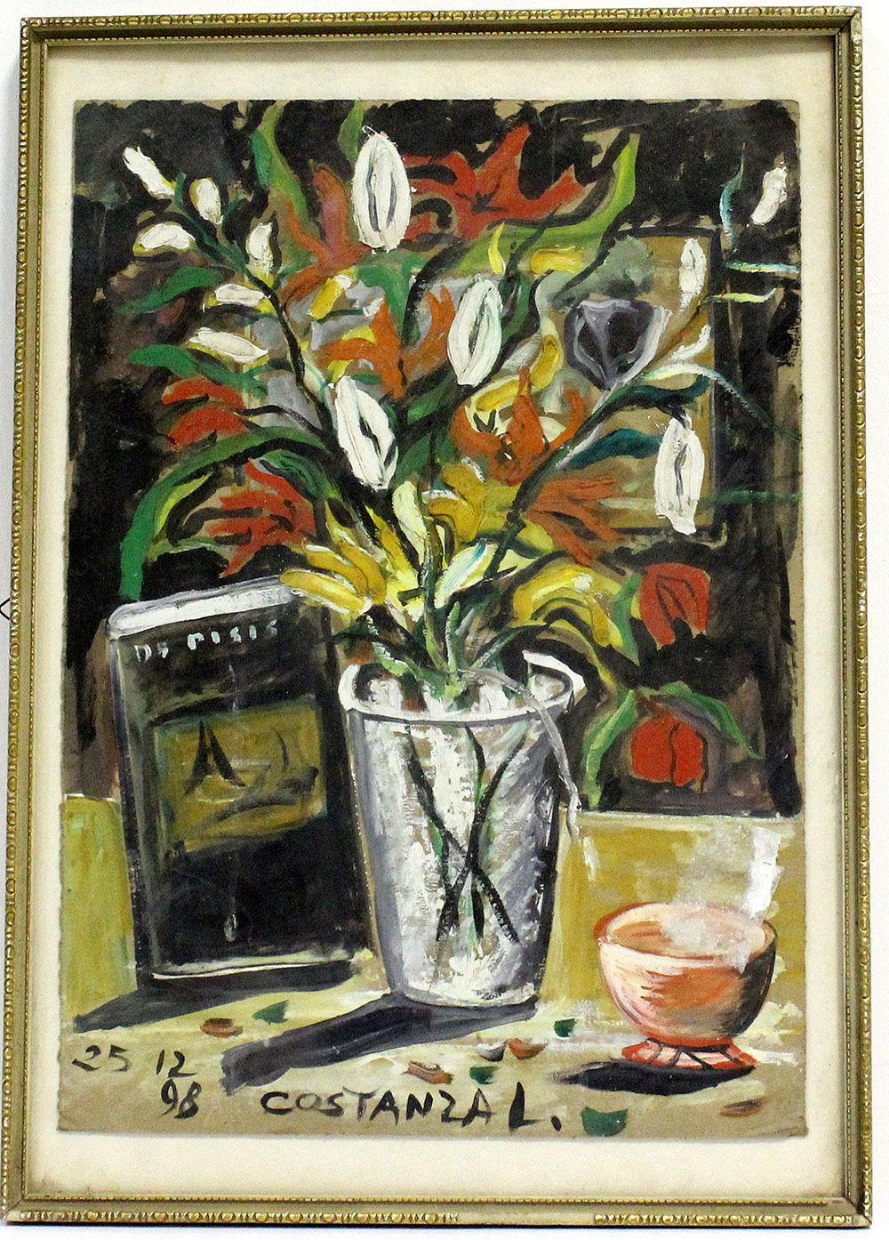 Lorenzo Costanza "Natura morta con vaso di fiori" olio su cartone (cm...