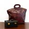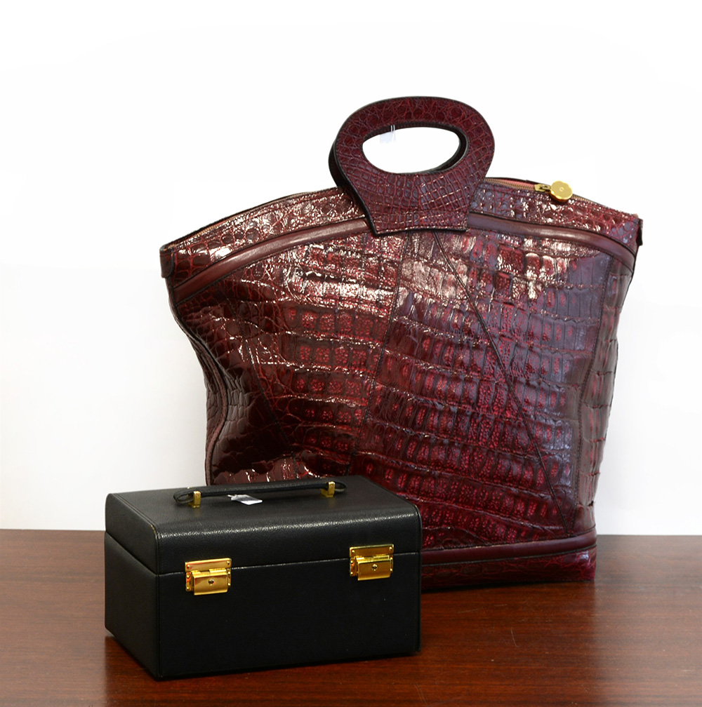 Lotto composto da un borsone da viaggio bordeauxe un bauletto portagioie...