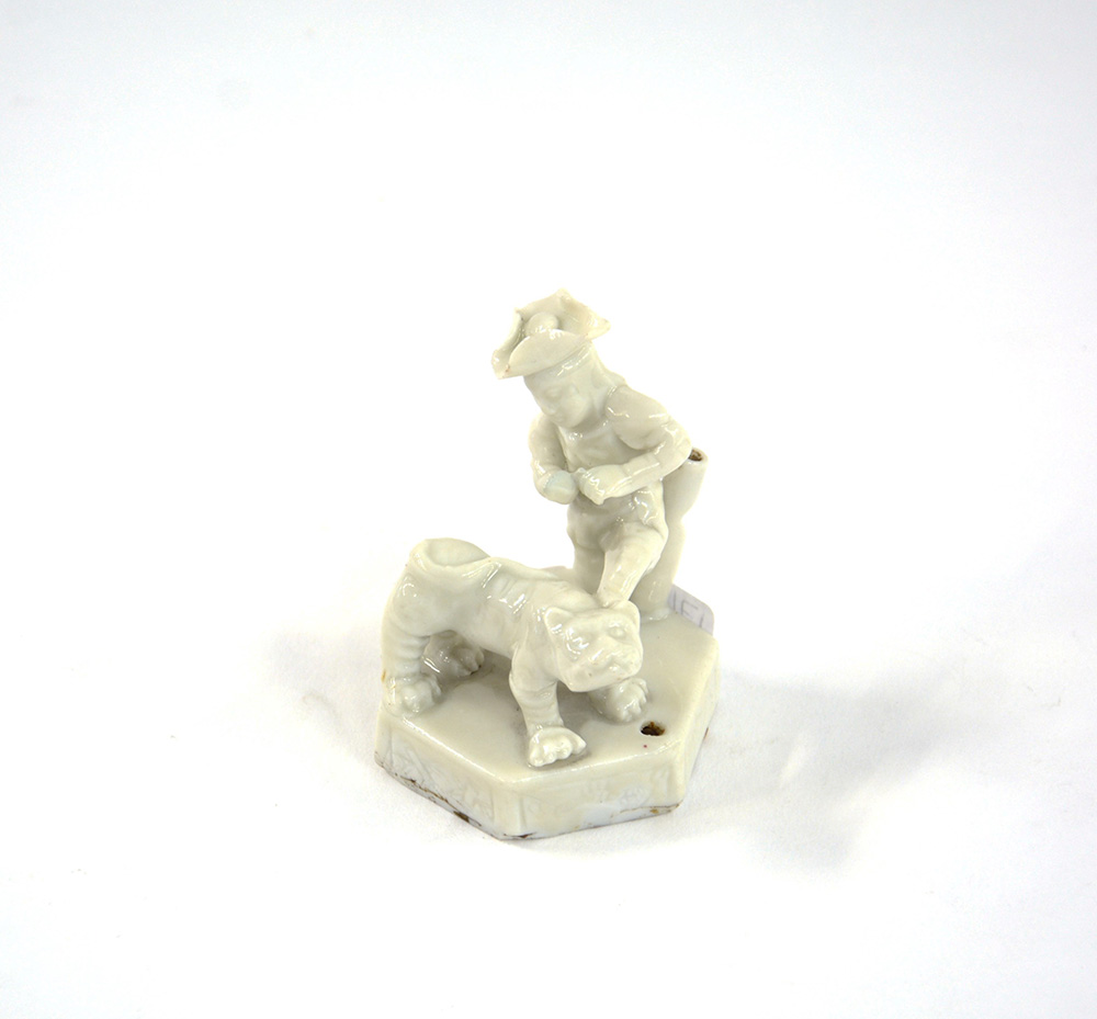 Blanc-de-Chine raffigurante Europeo con tigre su base esagonale