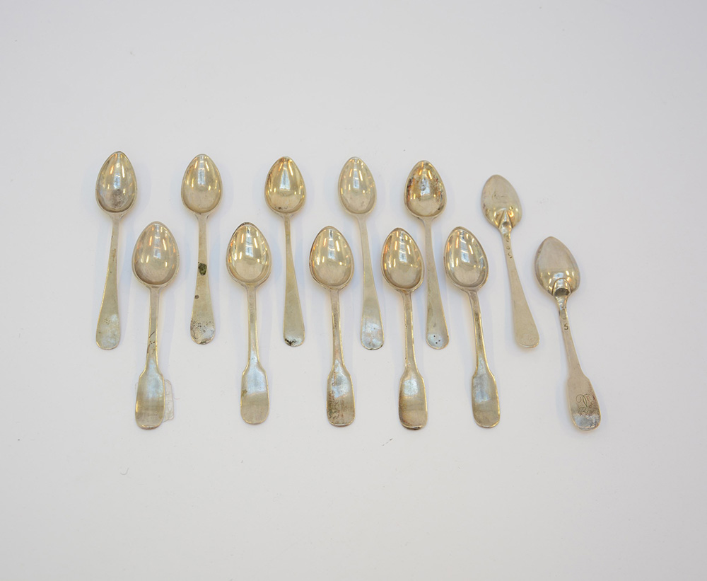 Dodici cucchiaini in argento. Regno delle due Sicilie, Napoli 1809-1824 (l. cm 12) (gr tot. 240 ca.)