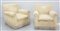 Coppia di poltrone rivestite in tessuto operato nei toni del grigio e beige...