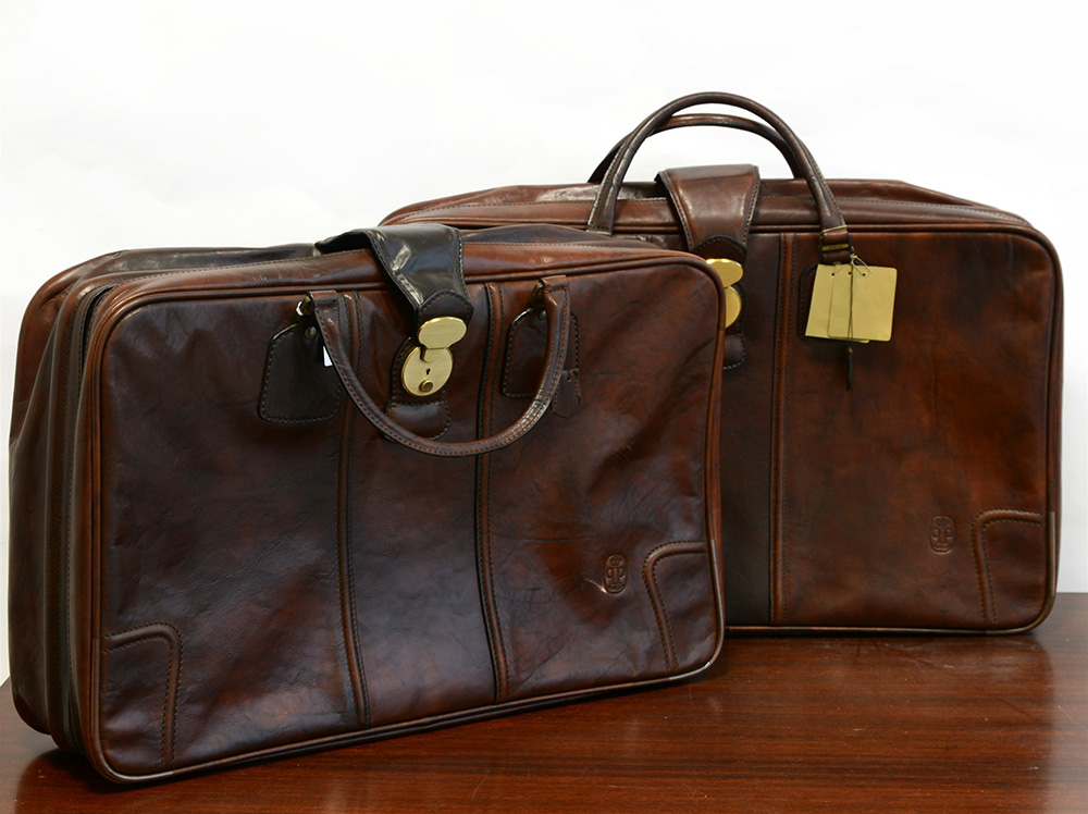 Lotto di due valigie in cuoio