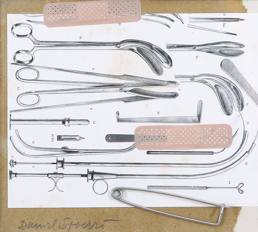 DANIEL SPOERRI Galati 1930 Senza titolo tecnica mista e collage su cartoncino...