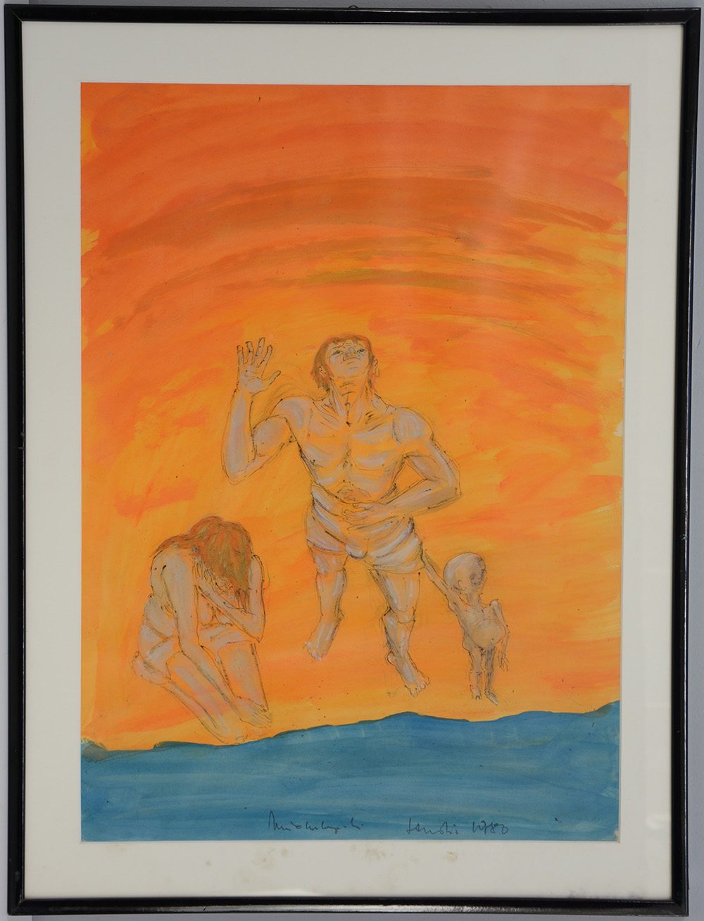Firma indecifrata "Figure" 1980 tecnica mista su carta (cm 70x50) firmato e...