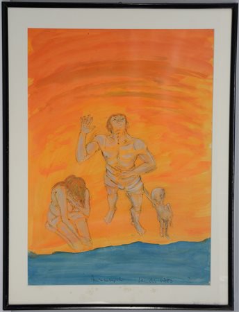 Firma indecifrata "Figure" 1980 tecnica mista su carta (cm 70x50) firmato e datato in basso al centro, in cornice
