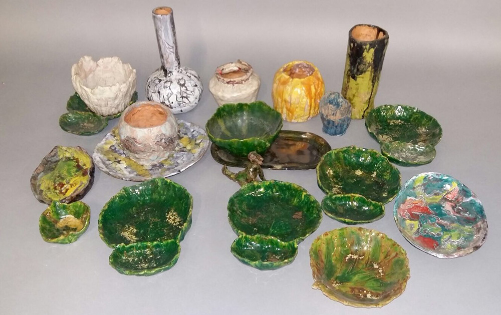 Magnaghi Matilde Cartone contenente numerosi manufatti in terracotta smaltata...