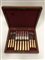 Servizio di posate da dessert in metallo argentato e avorio. In scatola in legno (scatola cm 24,5x29) (lievi difetti)