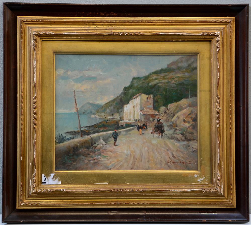 Lot 588 | Alceste Campriani (Terni 1848 - Lucca 1933)"Strada costiera" olio su...