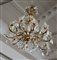 Lampadario a 15 luci in metallo dorato e cesellato a motivi vegetali e gocce...