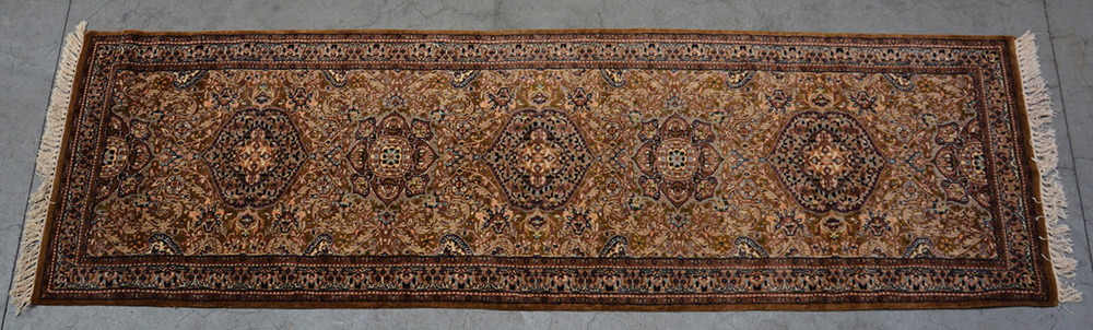 [Tappeti] Passatoia Kashmir, India, secolo XX. Disegno a piccoli medaglioni...