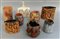 Gruppo di otto vasi in terracotta smaltata di forme e decori differenti (h max cm 21) (difetti)