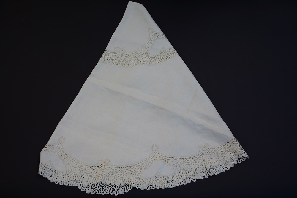 Tovaglietta rotonda in cotone misto lino con inserti in pizzo di Cantù (d. 162 cm) (lievi difetti)