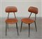 Coppia di sedie con struttura in metallo verniciato nero, seduta e schienale in similpelle. Sec.XX (difetti)