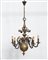 Antico lampadario olandese in bronzo a otto luci, parte superiore decorata a...