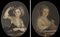 Coppia di litografie acquerellate raffiguranti giovani donne con frutta. Francia, sec. XIX (cm 29x22) In cornice in legno dorato (difetti)