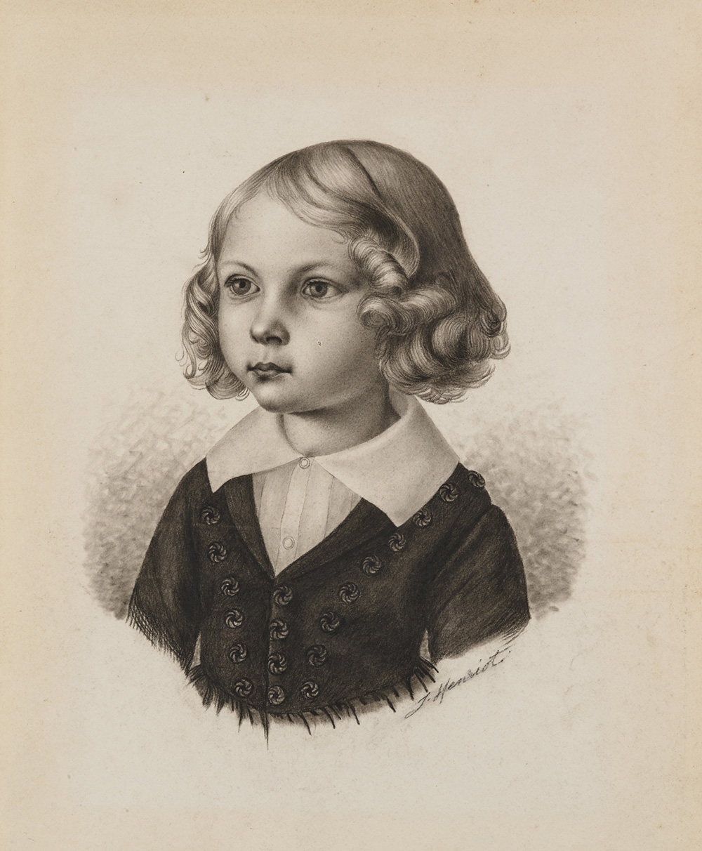 J. Henriot (sec. XIX) "Ritratto di fanciullo" matita e acquerello su carta...