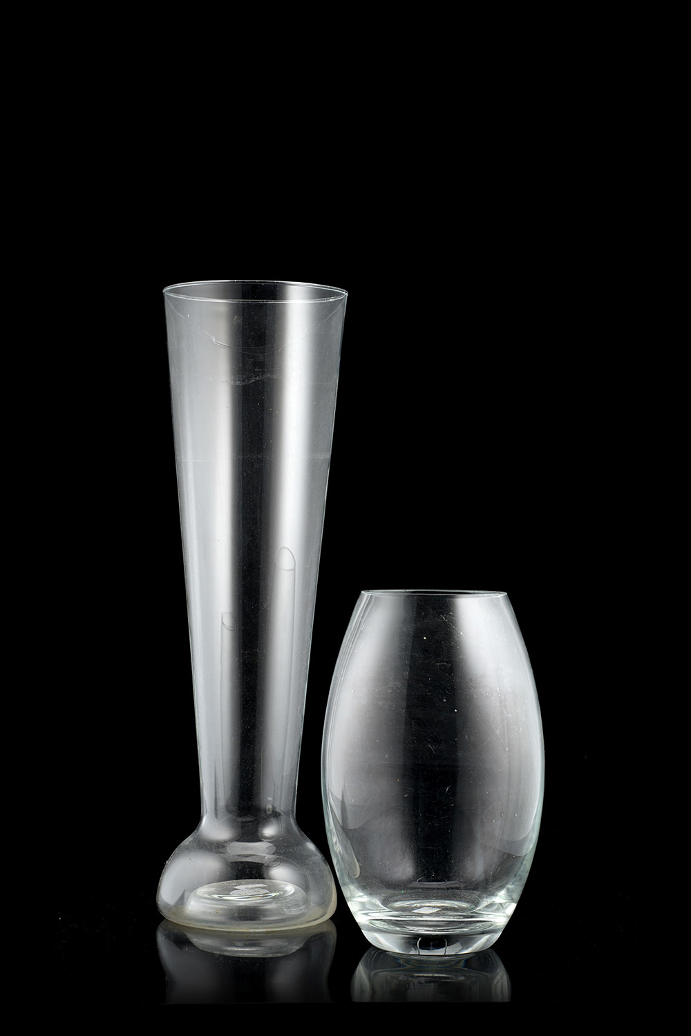 Lotto composto da due vasi in vetro incolore di misure diverse