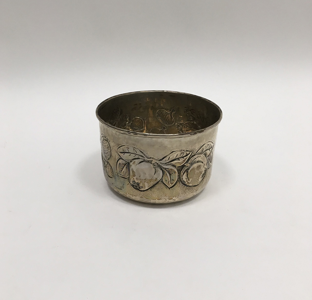 Ciotola in argento di forma circolare sbalzata a frutti. Italia, sec. XX (gr 200 ca.) (h. cm 8,3x d. cm 13) (lievi difetti)