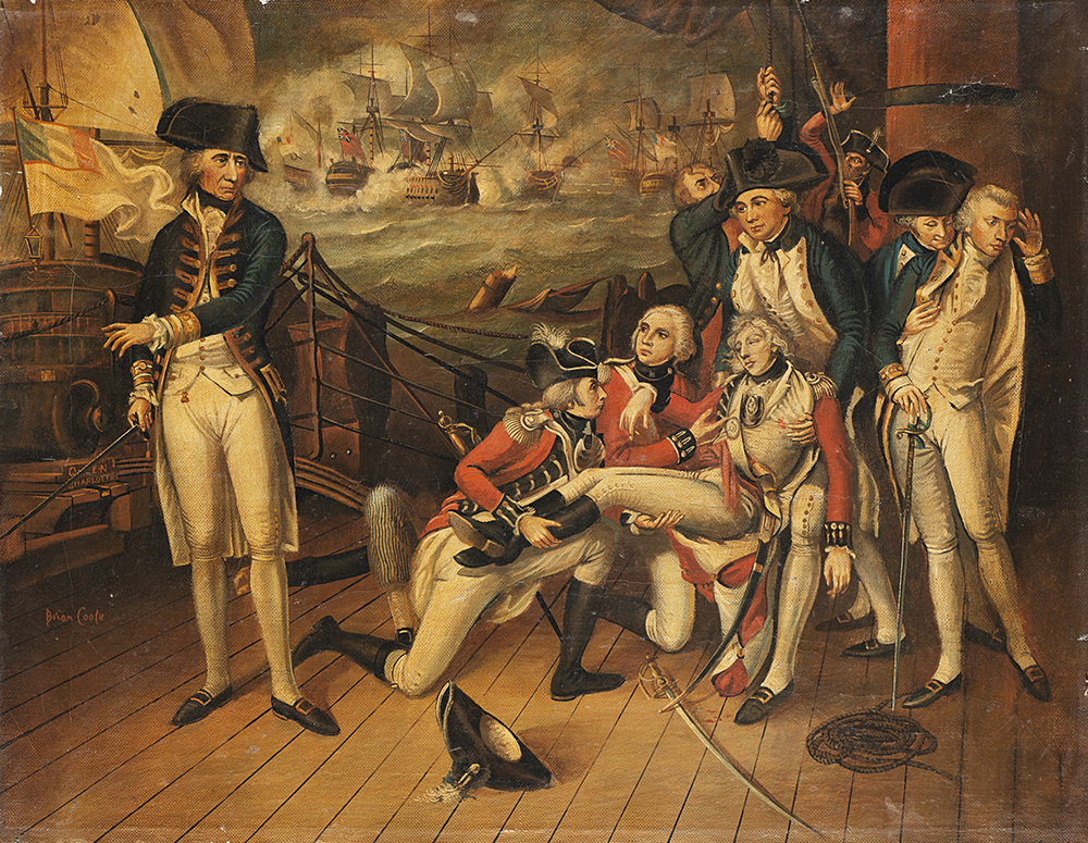 Brian Coole (Stati Uniti 1939 - ) Scena di battaglia navale con personaggi e...