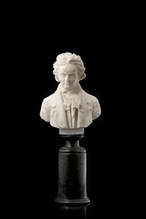 Artista del sec. XX "Beethoven" statuetta in alabastro su base tornita (h. cm...