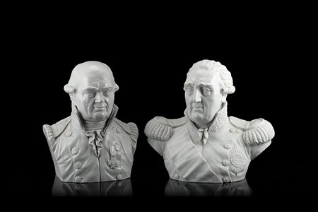 Manifattura del sec.XX. Due busti di generali in ceramica bianca (h. cm 24)