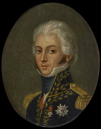 Scuola del sec. XIX "Generale francese" miniatura su rame ovale. In cornice...