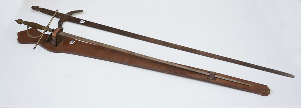 Lotto di due spade teatrali di cui una con supporto (difetti)